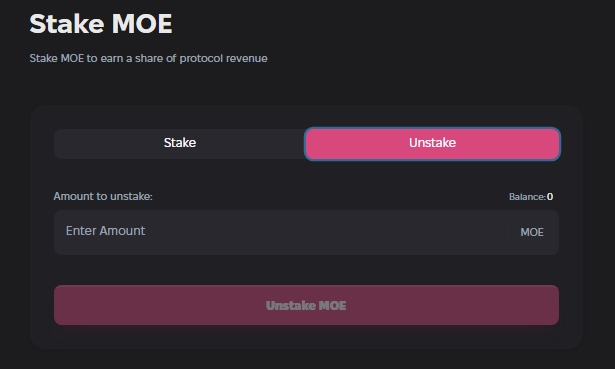 If you wish to unstake your MOE, you will first need to remove any votes you actively placed with your veMOE. Only after removing these votes will you be able to unstake your MOE tokens.
