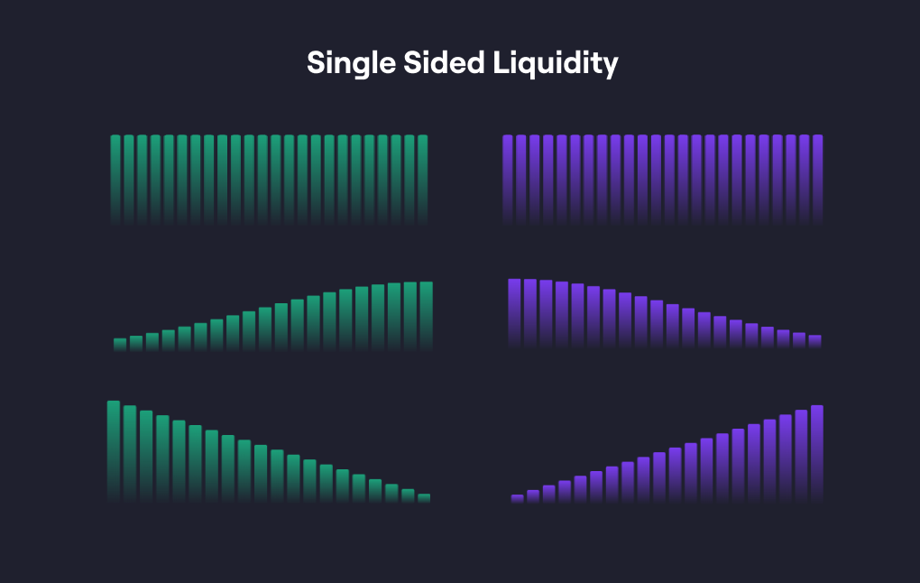 Single-sided liquidity allows you to stay exposed to just one asset, which is beneficial if you have a strong preference or bullish outlook for that particular asset. It is therefore perfect use of a single side deployment if you are aiming to enter/exit a token in favor of the other token in the liquidity pool.